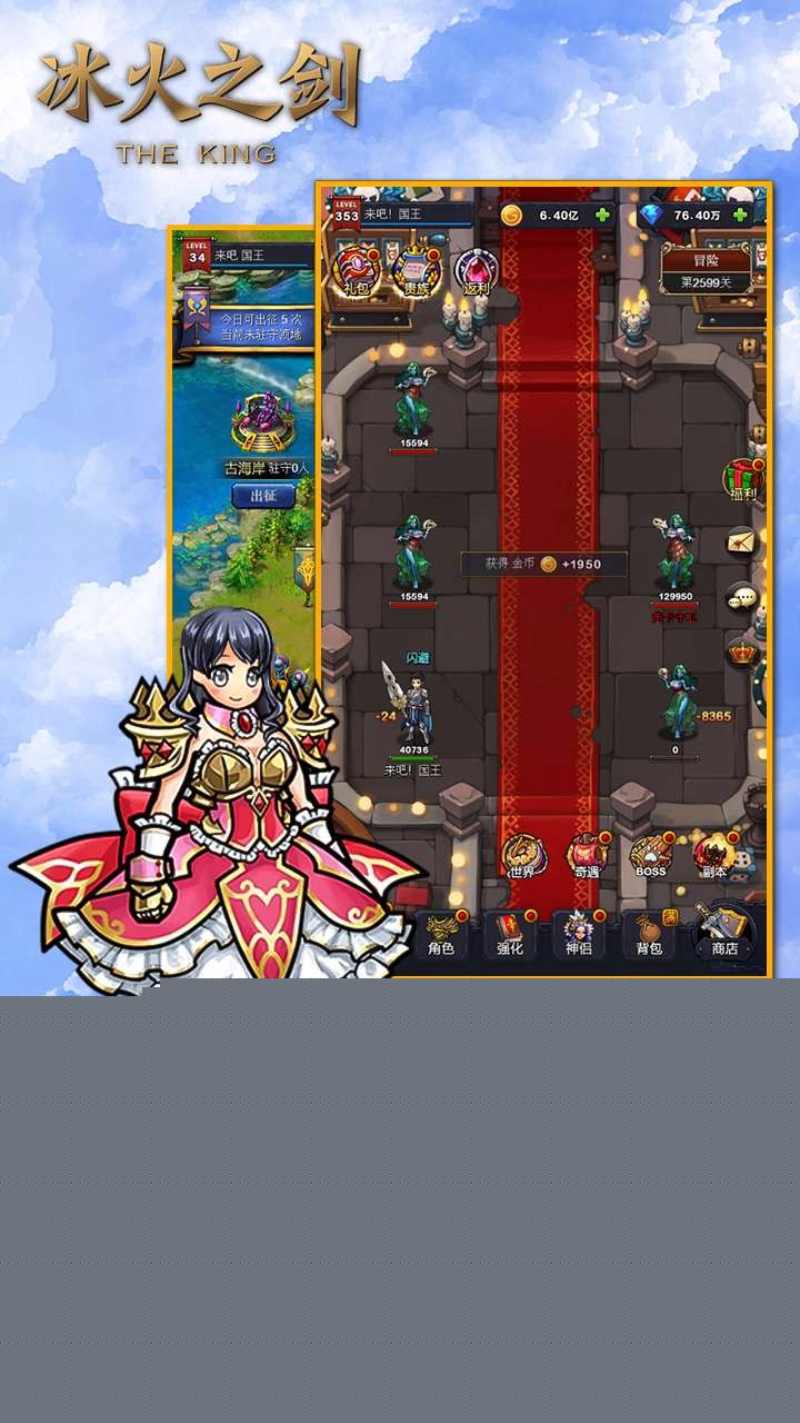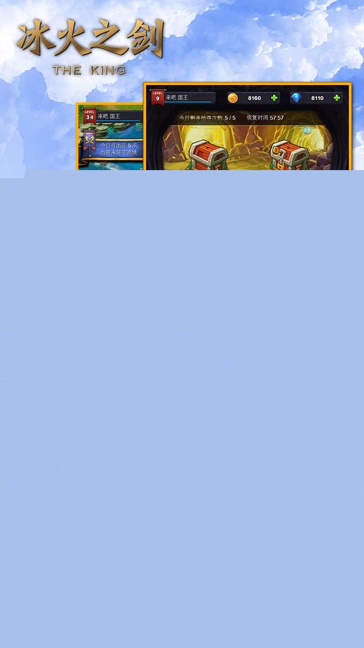 冰火之剑是一款魔幻冒险RPG题材手游,游戏拥有Q萌可爱的画风和丰富多样的玩法内容,玩家将以勇士的身份在魔幻世界开启冒险之路。不断战斗来提升角色的整体实力吧!没时间解释了,国王选拔赛已经开始,拿起你的武器赶紧上车吧。