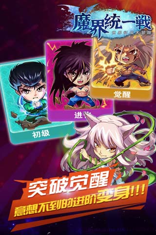 这是艺游天下旗下新派策略卡牌手游,数百名玩家耳熟能详的格斗角色融入其中,成就东方魔幻史诗!Q版百变英雄形象,自由搭配策略为王,大量BOSS想战就战,拉风宠物可萌可猛,独特军团系统让你亲手缔造专属王国。根据经典动漫幽游白书改编而来的角色扮演类手游,魔界统一战变态版更加全面的增加了更多的新内容,让玩家可以很好的重温动漫故事,并与动漫中的主角们并肩作战,丰富的游戏玩法将会给玩家全新的游戏体验!