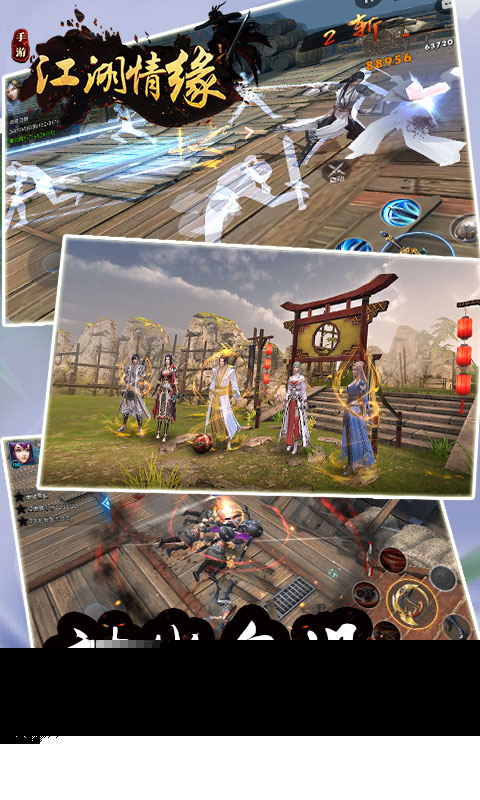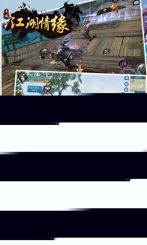 《江湖情缘》带你领略快意恩仇的真实江湖。游戏独创5V5蹴鞠新玩法,传承江湖侠士经典竞技体验;创新染色可交易时装体系玩法,色彩随心定义更有趣!电影级3D大场景,唯美画面演绎极致国风武侠;实时pvp,多人同屏野外群战,争夺江湖地位;技能组合,见招拆招,真实还原侠士过招全过程;更有三大派系精深武学,碎裂屏幕的华丽打击特效,原汁原味融入激烈对战之中,让你感受快意江湖!