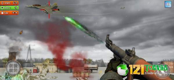 2、成为战场上的英雄并击落强大的喷气式飞机,小心翼翼地瞄准射击飞机;