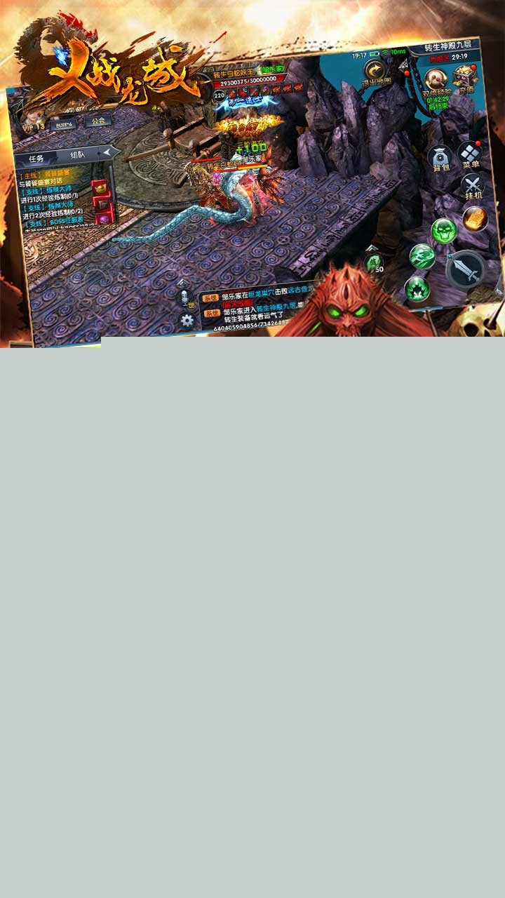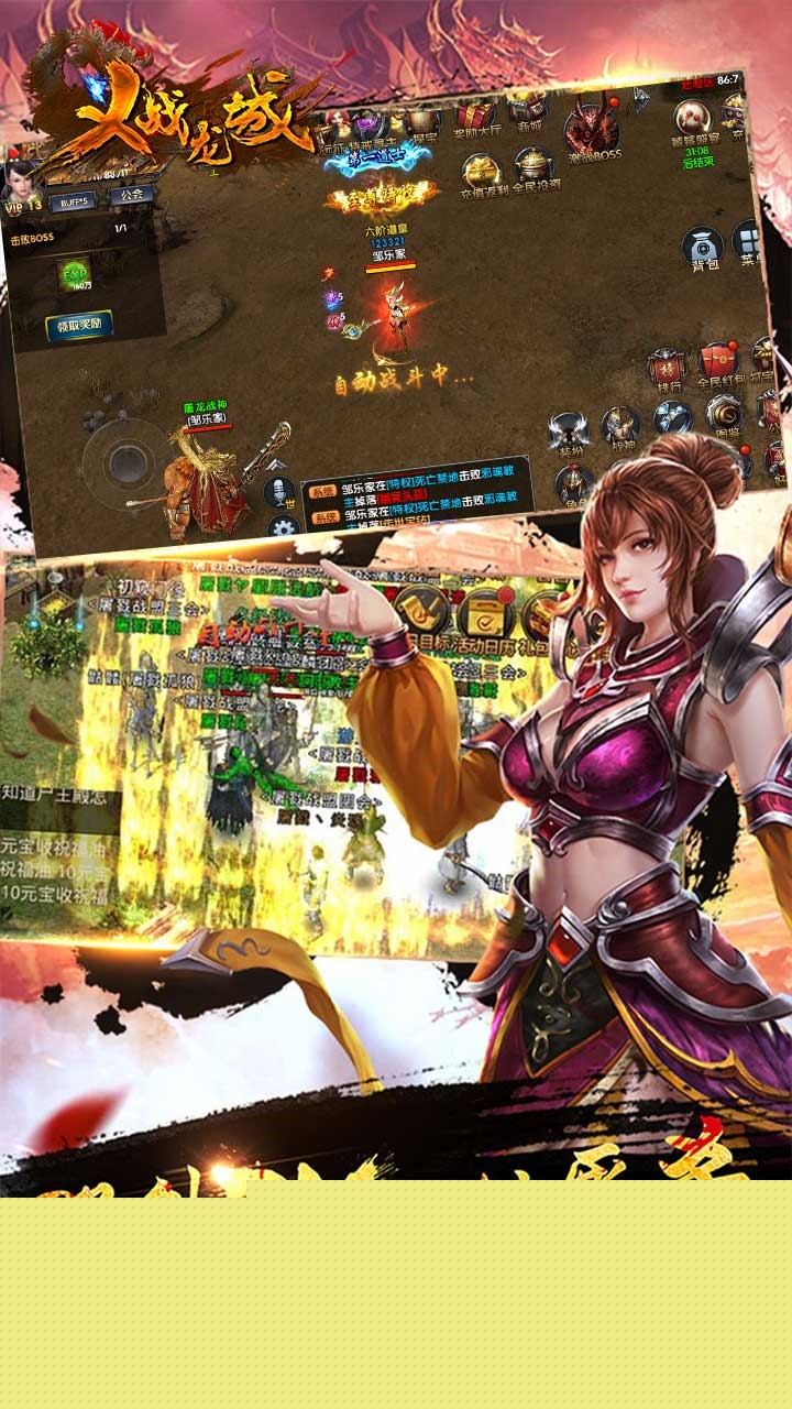 2019经典复古手游《义战龙城》由专业团队打造,百分百经典还原,是一款顶级匠心传承的3D MMORPG 手游之作。游戏以打BOSS爆装备,即时PK为核心,完美再现了攻占等场景;游戏内可享受多人PK,自由交易,抢BOSS爆神装等乐趣!最原汁原味,带你重回玛法大陆,集结兄弟们,霸主邀你一战!