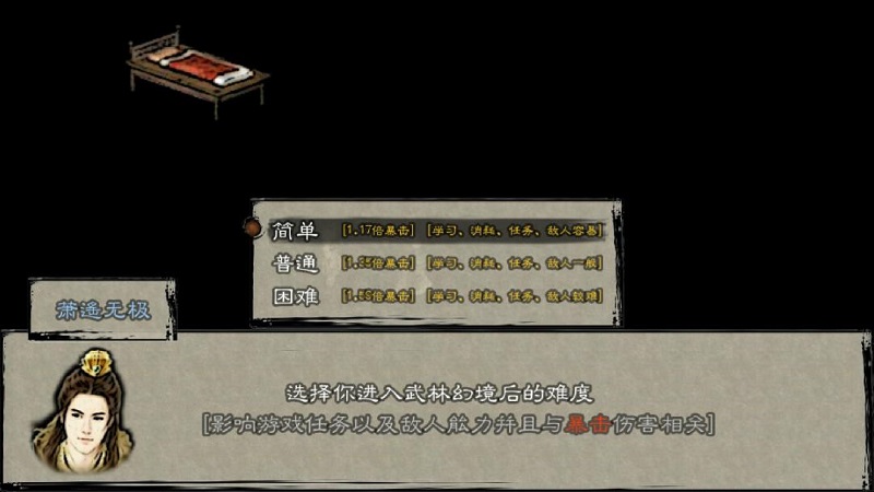 这是一款水墨风格武侠类游戏,纯免费的单机角色扮演游戏,无需联网,无内购,需要动脑需要分析需要研究的高自由度游戏,游戏中人人平等,没有充钱就能无敌的玩家,给所有喜爱武侠的人同一个起跑线,在这个世界完成你心中的武侠梦。