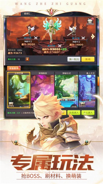 世界BOSS、竞技场、妖王入侵,挑战你的战力极限;挂机刷怪、副本修炼即得大量神装,爆炸属性一键打造;云雾缭绕,秘境探访仙迹。酷炫羽翼回头率爆表;丰富礼包疯狂来送,全新装备玩法打造最强战力;萌宠战骑强势助阵,踏上战魔斗妖的仙侠之路。