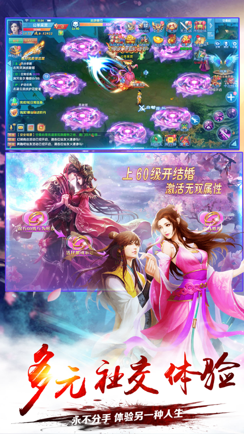 3、飞天遁地全民抢亲苍茫天宇任你主宰,社交系统美女和你轻松畅聊,最强搭档坐骑陪伴无限进化。