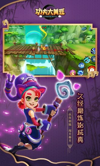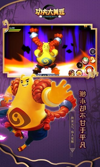 《功夫大黄豆》继承了原作的东方美学基因和道家思想,结合现代化的表现方式,独创出了仙人模式,当角色积攒了一定的能量便可觉醒,化身仙人,展示酷炫技能。当然,作为一代大侠,怎么能没有帮手?《功夫大黄豆》将《豆福传》的角色萌宠全收入,无论是温柔的豆香还是霸道的护士长,都将发挥自己的特长,为玩家的冒险保驾护航。