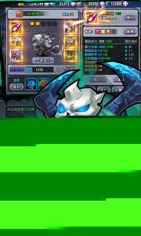 3、升级速度节奏创新改动,只要升级就可以获得大量钻石,体力、扫荡卡不断送让你玩得爽,撸得爽!还有带感背景音乐,超炫战斗方式,百玩不厌!