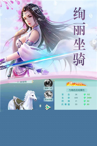 游戏拥有3D超大地图场景,可以让你在仙侠的世界中自由的翱翔,华丽的翅膀加上霸气的坐骑,让你看起来就有一种不可侵犯的压制力,精美细腻的画面也能给玩家带来一种极致的游戏体验,在游戏中还可以和漂亮的小姐姐结为伴侣,让玩家享受到游戏的乐趣。