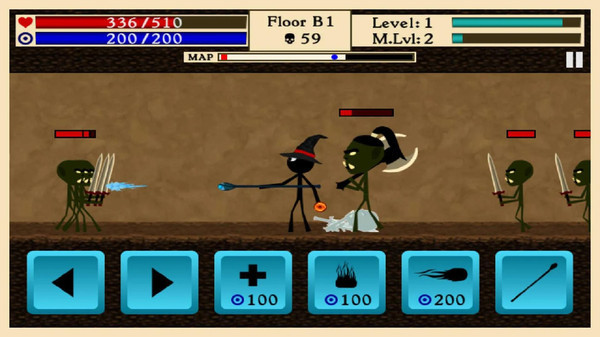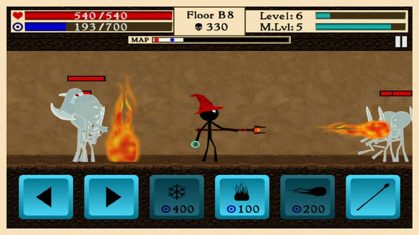 玩法也很简单,控制火柴人魔法师移动,释放魔法,消灭敌人。
