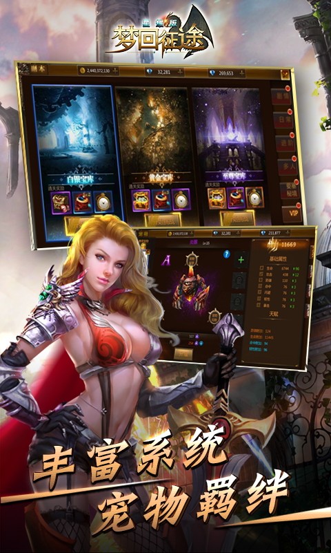 2、多样的游戏副本,多样的怪物属性,游戏拥有多个独立的战力提升系统,轻松突破战力瓶颈!超炫的时装以及坐骑,光效绚丽,感受华美绚丽的时间盛宴!