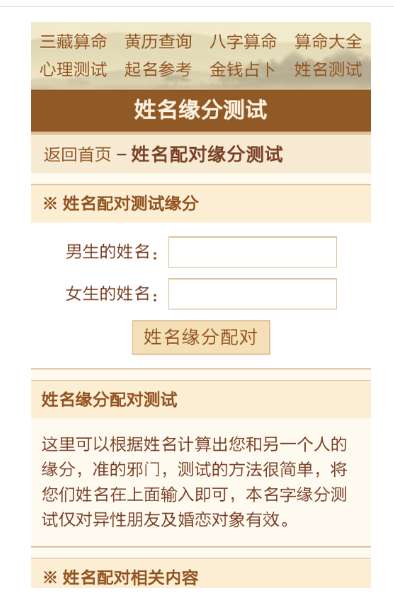 姓名配对算命是一款算命爱好者交流移动社交客户端,算命爱好者或者想算命的朋友们,可以下载此软件,多学习一下风水和算命知识,看看自己的运气怎么样,算命人士还可以进行术语交流,欢迎算命和想算命人士下载!