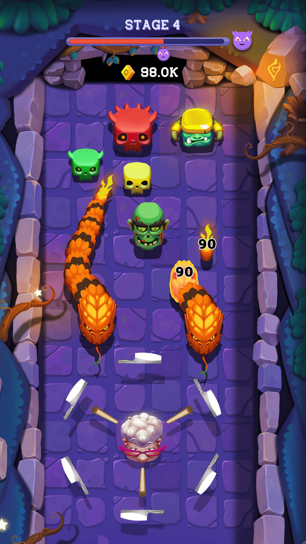 恐怖飞刀奶奶是一款让人耳目一新的角色扮演游戏。玩家需要控制一个很厉害的老奶奶,在游戏中,老奶奶神功盖世,飞刀护体,在身边的半径两米范围内可以控制飞刀绕身旋转,任何接近的敌人都会被击杀,就是这么强悍