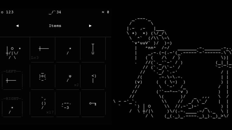 在游戏当中最引人注意的是它的画风,在普通游戏当中都会采用精美的画面或者是复古的像素风格的画面,但是在本作当中开发商选择了由ASCII组成所有的画面,ASCII是基于拉丁字母的一套电脑编码系统,它是现今最通用的单字节编码系统。游戏当中玩家将要控制一名英雄,展开一段冒险之旅,沿途他需要消灭那些阻挡他前进的敌人。