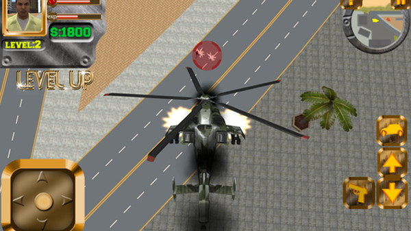 5、游戏不是一个简单的赛车驾驶游戏,你还可以驾驶一架强大的武装直升机不断攻击你的敌人;