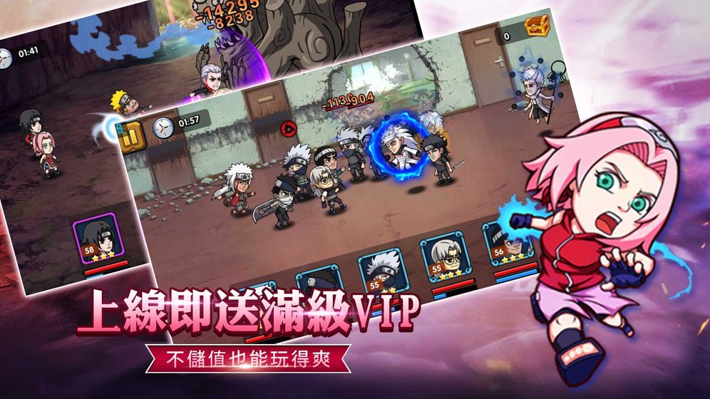 4、击败凶猛的尾巴野兽后,追捕数以百万计的秘密宝藏。装备和升级所有忍者英雄都是最强的!