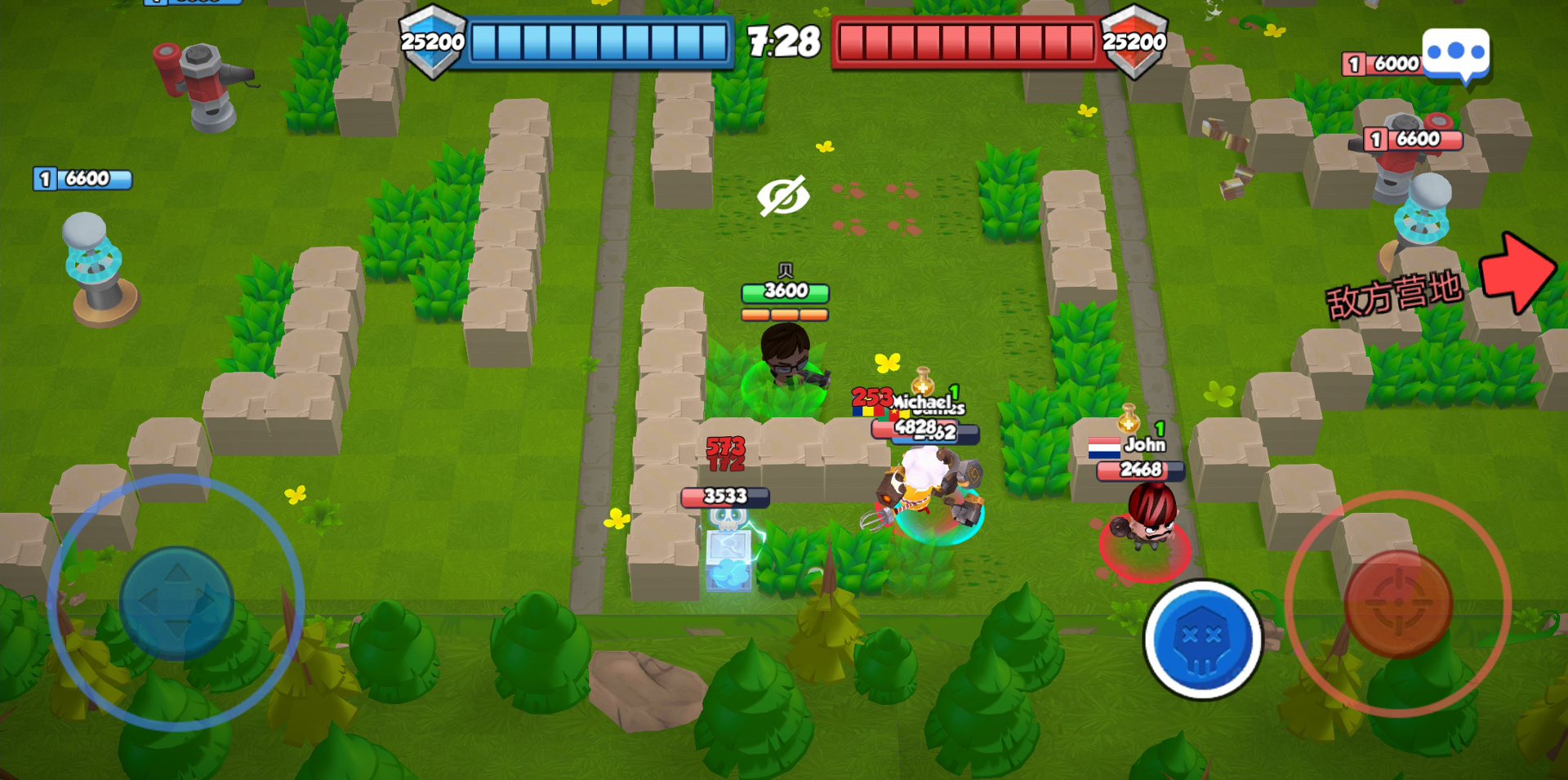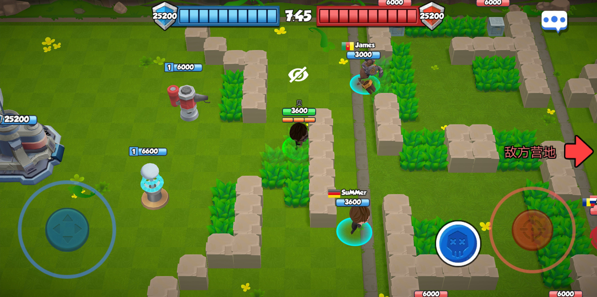 3、推塔模式3v3组队,摧毁敌方炮台和基地但是不要忘记防御;