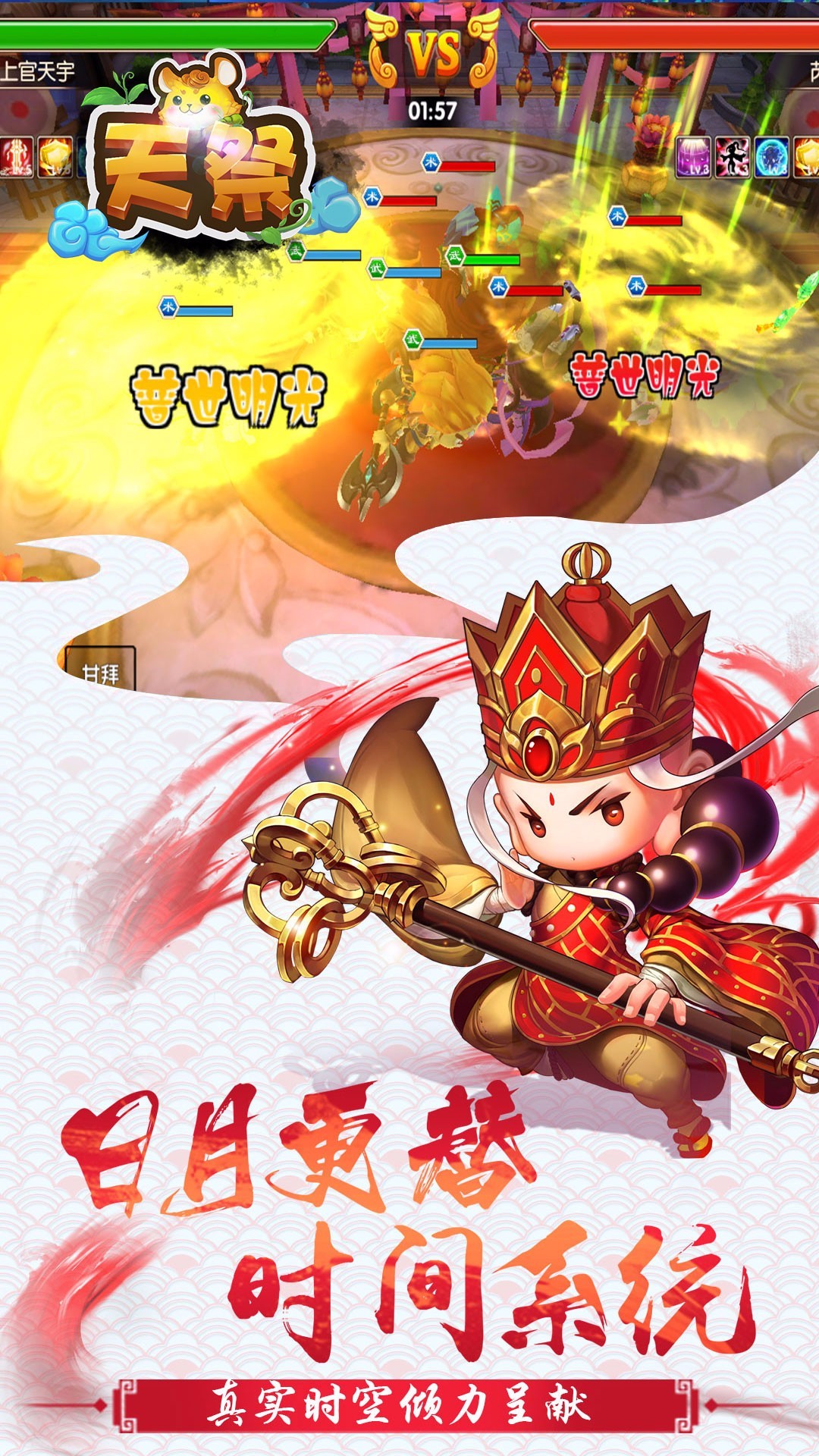 天祭是一款经典西游类角色扮演手机游戏,天祭采用Q版游戏风格构建趣味西游世界。经典西游角色悉数登场,特色剧情原味还原,全新策略格斗玩法,给你不一样的西游,更有丰富的剧情闯关玩法等你来挑战,还等什么?赶紧来下载试玩吧!