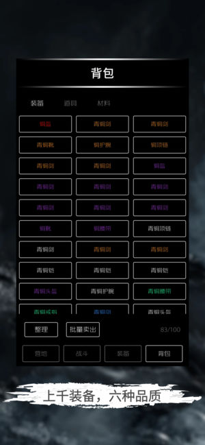 3、超大容量的背包,让你不用担心自己背包满无法拾取装备,还可以批量出售没用的装备。