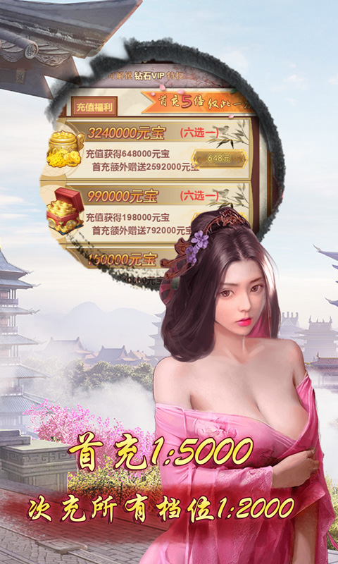 【充值比列】首充1:5000、次充所有档位1:2000、后续充值1:1000。