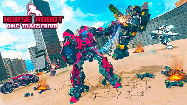 3、玩我们的自行车改造马机器人射击游戏,解锁多个改造机器人。