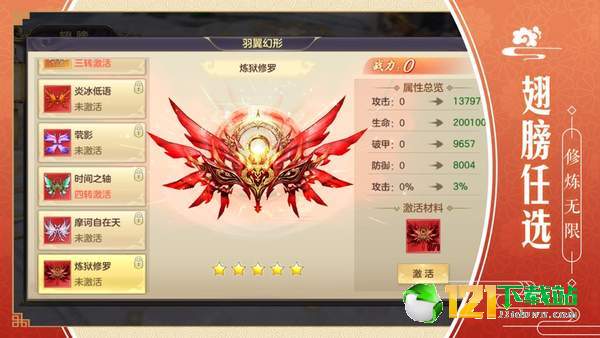 1、在游戏当中各具特色的羽翼,还有神兵都是可以通过一些材料去提升的;