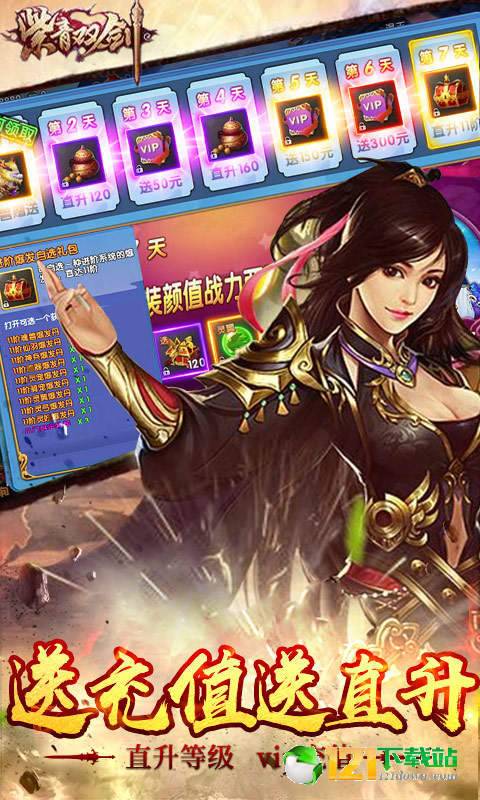 2、上线即获得超级VIP,88888绑钻,次日登录直升120级,三日登录送50元VIP充值卡,四日登录直升160级,五日登录送150元VIP充值卡,六日登录送300元VIP充值卡(达到最高VIP),七日登陆直接送上版本价值2K的任选进阶直升11阶爆发丹。