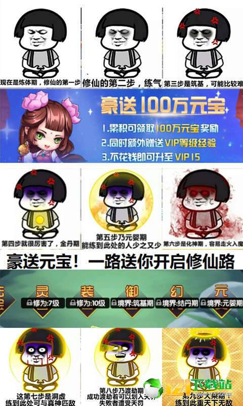 上线赠送VIP9,18888元宝,1000000灵气,1000000灵石