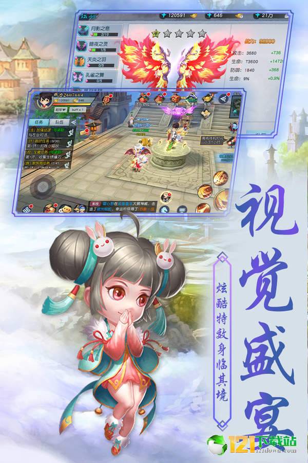 2、多人在线,闯出一片天,策略二次元、离线挂机,与自己的仙友伙伴征战跨服世界,缔造神奇。