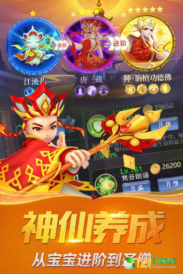 2.神仙养成,从宝宝进阶到圣僧,你的唐僧可以通过不断的升级进阶,达到超强的最强英雄角色,提升输出。