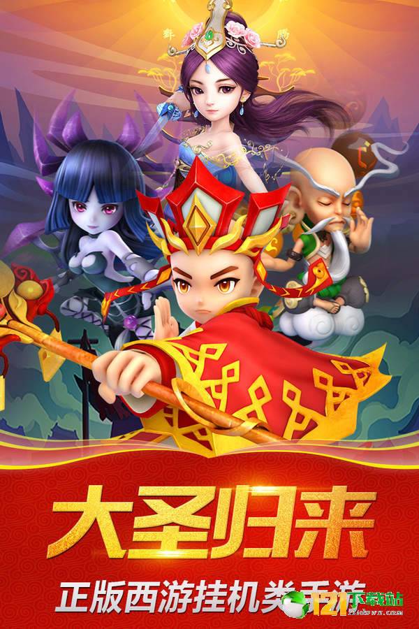 3.大圣归来,正版西游挂机类手游,在这款游戏中你可以尽情的享受一秒挂机,刷取海量的怪物,提高升级。