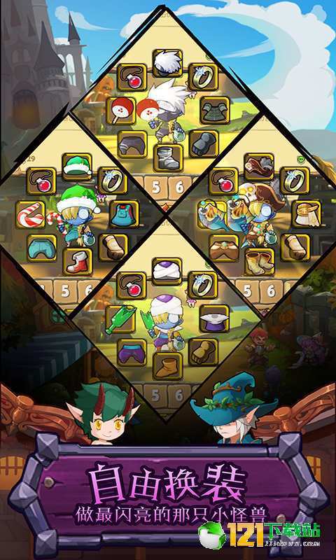 1、游戏中有多样的怪物角色可以招募选择,为他们定制形象,穿上装备。