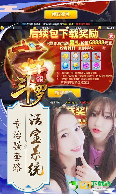 1、上线送18888元宝,下载后续资源再送2万元宝