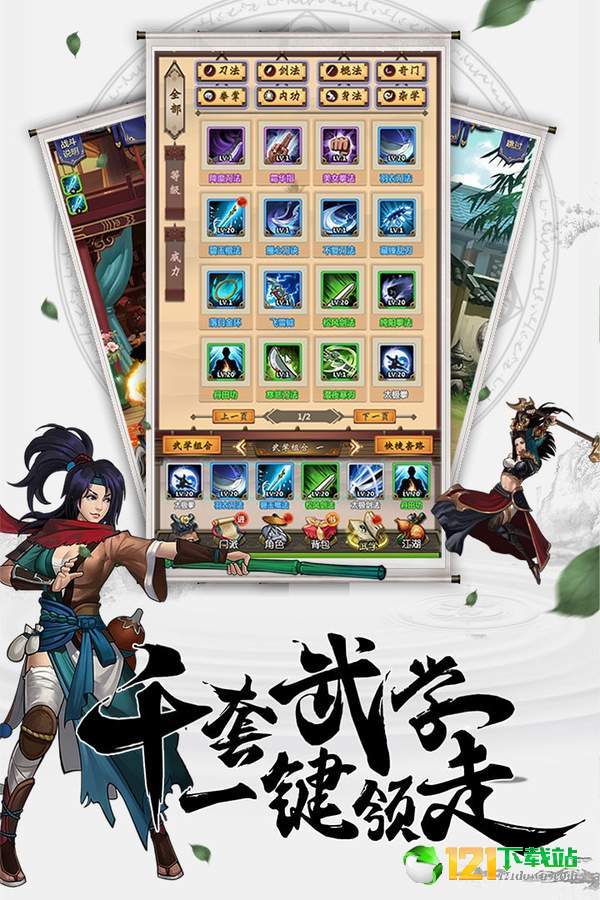 雷一刀斩、八荒六合功千套武学自由学习,初出江湖的小虾米,也能成为一代大侠!轻松对战,擒拿、点穴、剑诀、刀法、轻功、
