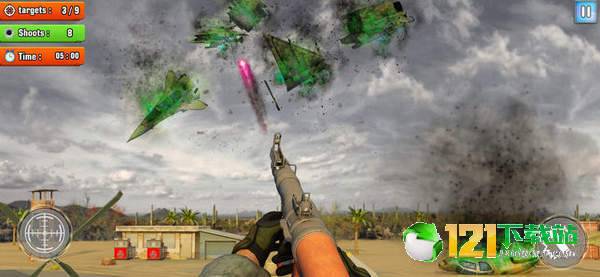 2、成为战场上的英雄并击落强大的喷气式飞机,小心翼翼地瞄准射击飞机;