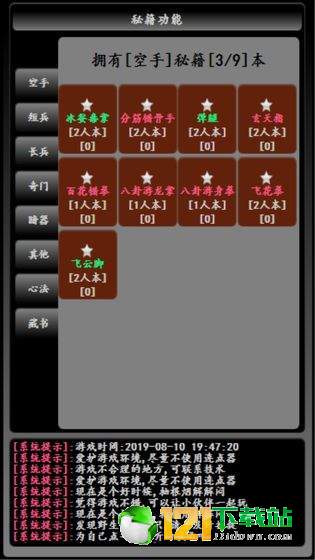 2.超多的武林秘籍,奇门遁甲和绝世武功等待着你的收集,学习各种门派内功心法,获得强大的武功,独霸天下。