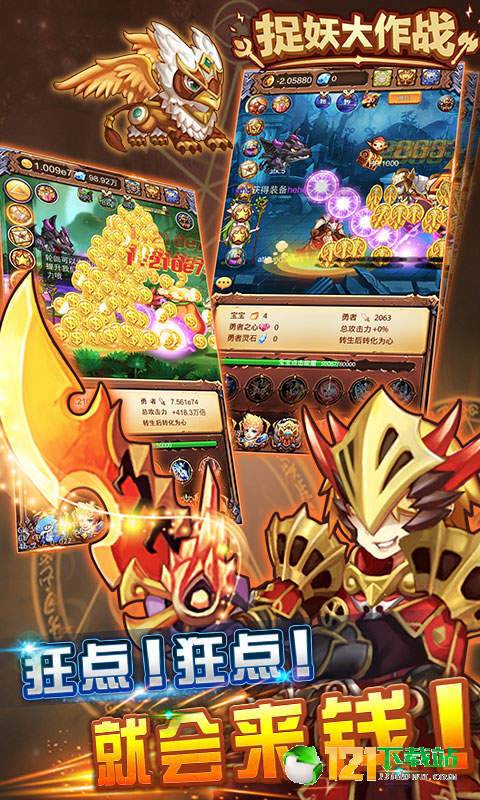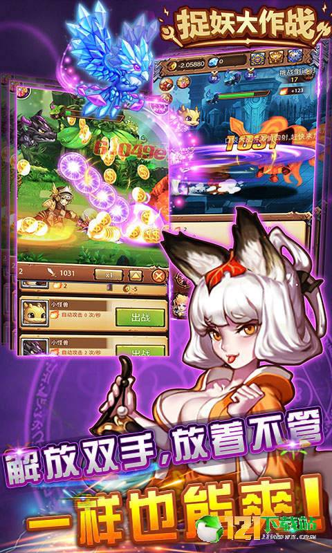 《捉妖大作战》是一款的放置类挂机冒险游戏,精美的游戏画面、新颖有趣的玩法、超乎想像的简单操作,感受即好玩又轻松的全新挂机体验。带宝宝、战轮回、闯兽潮、夺圣物、爬天梯,疯狂点击就能爆发出超强战力,24小时不间断升级轻松超神!