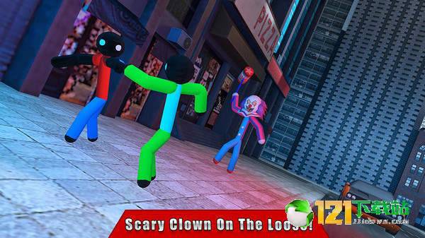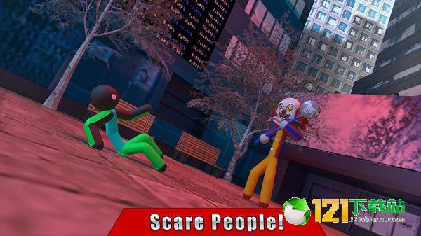 1.做一些让人更加可怕的事情,在这个神秘的杀手小丑火柴人城市攻击游戏中;