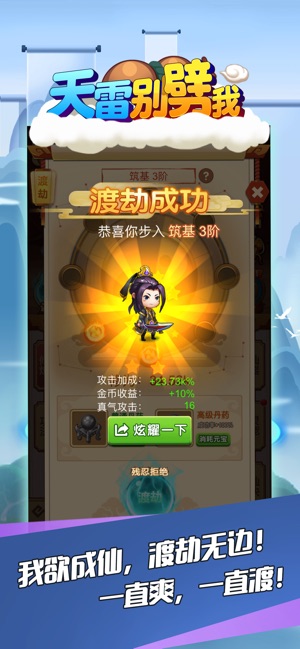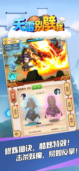 天雷别劈我是一款Q萌风格的放置修仙游戏。快节奏的修仙玩法,打坐修元,渡劫升级,挂机刷怪即可完成快速升级,各种绝世灵宠等你来抓捕。