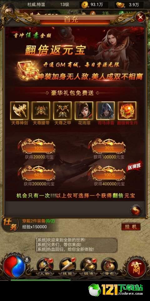 ★建号就给88888元宝,888888金币,海量福利让每个玩家一路发发发。