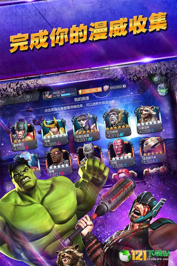 3、收集最强力的超级英雄以及反派英雄收集,升级,并根据漫威漫画情节中的人物关系,妥善地安排队伍中的英雄和反派成员来获得队友加成;黑豹和风暴女,或者独眼龙和金刚狼在一起可获得加成,又或者用银河护卫队成员组成队伍可以获得团队协作加成;越强力的英雄,他们的属性数值、能力以及特殊动作就越强;随时都会有新的英雄进入到格斗赛当中来;
