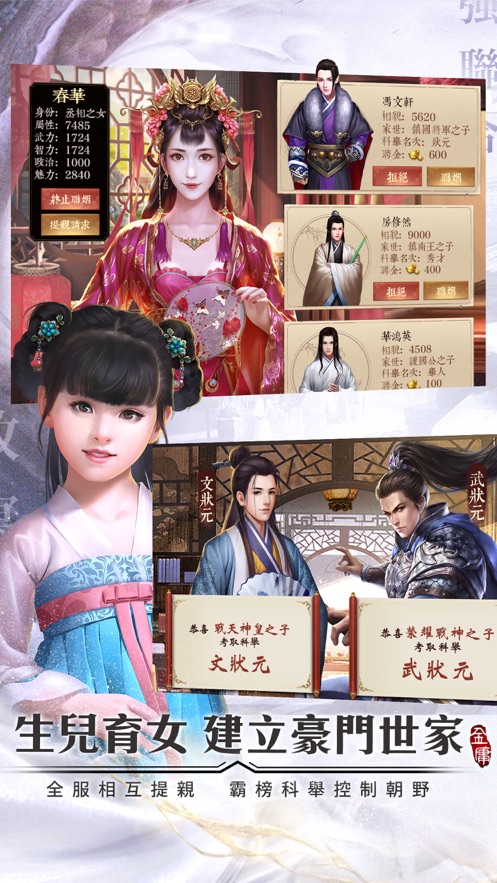 2、轻松囊括七人后宫,坐拥众多性格各异的美女。