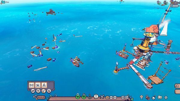 1、努力从海面上搜寻各种各样的材料,然后用这些可用材料建造属于你自己的浮岛城镇