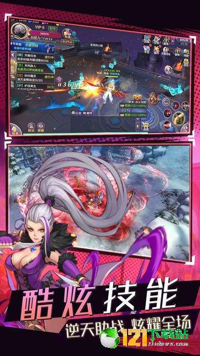 2.技能特效,精致华丽,精心设计的人物特征,每个角色都有着自己独特的技能绝招;