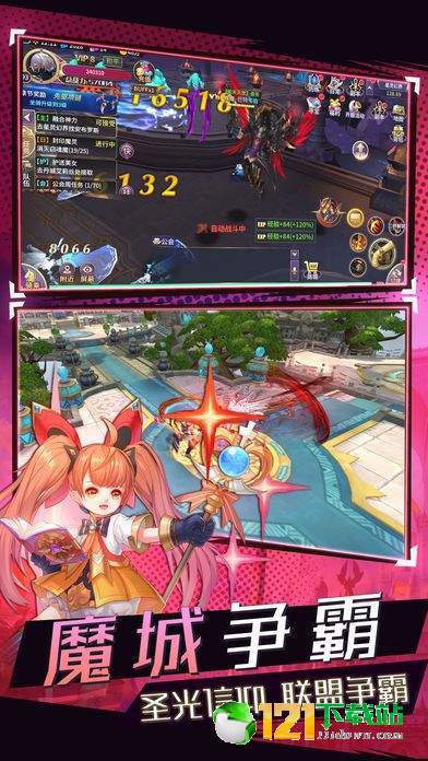 1.Q版人物,萌翻你的心,更多精彩丰富的最新玩法,魔城争霸,与队友一起联手战斗;