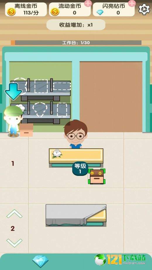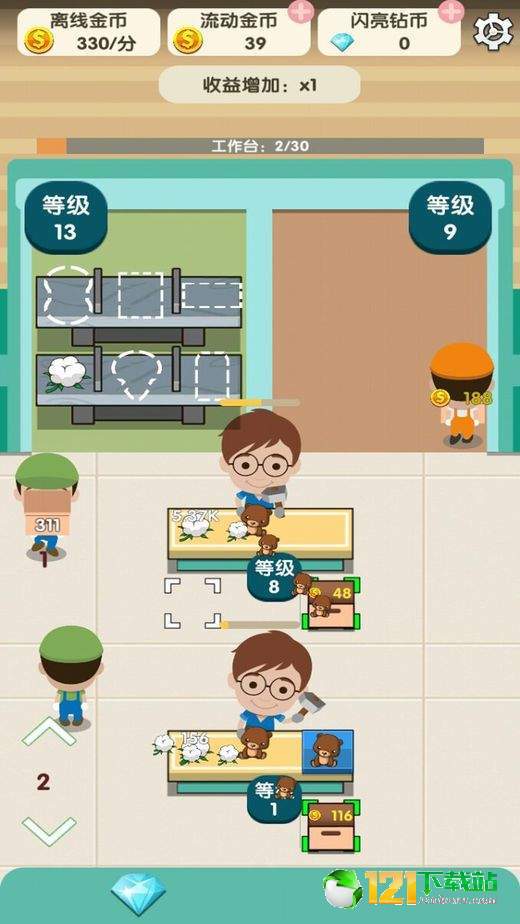 1、轻松放置类操作,玩法类似于高考工厂,老板自动化管理工厂,轻松赚到钱。