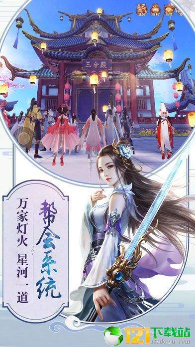 2、全景美丽的仙境,一些仙侠角色可以御剑飞行,自由翱翔在九州世界的空中。