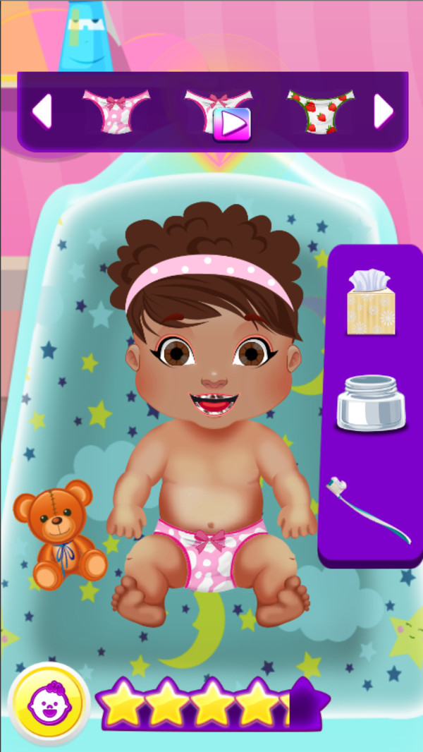 1、欧美卡通风格的游戏画面,可爱宝贝需要你关心,发挥保姆的作用,帮助妈妈解决困难。