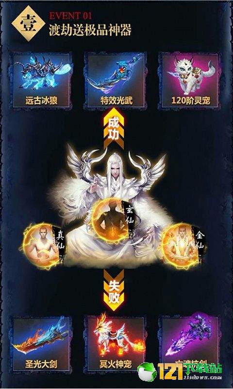 4、首冲即送超级橙武,酷炫幻形,藏宝阁,升级丹,还有上古神器等珍贵物品,让你的战斗力瞬间爆炸。