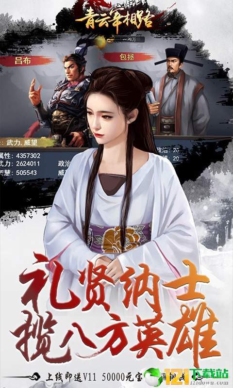 1、上线就送V11,5W元宝,100W铜钱、100W兵力、100W粮草,绝版英雄、红颜免费领取;