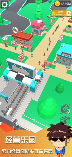 1、开始经营你的卡丁车主题乐园,会有许多的游客慕名而来,开始激烈的对决。
