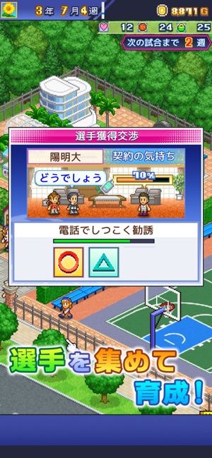 培养个性丰富的选手们来挑战比赛吧。亲手操纵的选手们取得的胜利是特别的!让俱乐部内部的设施充实起来,让选手们和客人享受吧。因为可以自由配置,怎么排列就看你了!如果能与对俱乐部有兴趣的赞助商候补签约强有力的支持能期待吗?赞助商也和选手们一起成长,让我们好好相处吧。